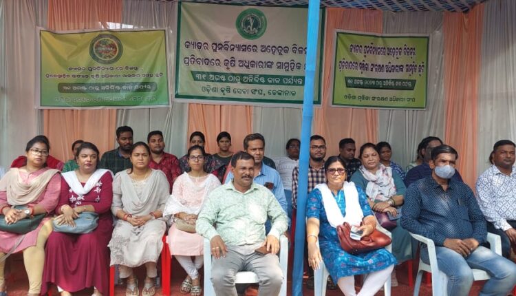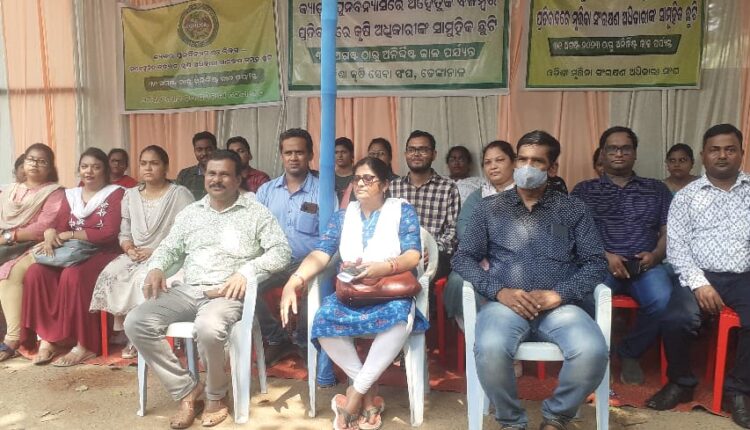 ଢେଙ୍କାନାଳ : ଓଡିଶା କୃଷି ସେବା ସଂଘ ଡାକରରାରେ କ୍ୟାଡର ପୁନର୍ବିନ୍ୟାସ ଦାବୀରେ ଗୁରୁବାର ସାରା ରାଜ୍ୟର କୃଷି ବିଭାଗର ସମସ୍ତ ଅଧିକାରୀମାନେ ସାମୁହିକ ଛୁଟି ସହିତ ଶାନ୍ତିପୂର୍ଣ୍ଣ ଆନ୍ଦୋଳନକୁ ଓହ୍ଲେଇଛନ୍ତି ।ଏହି ଅବସରରେ ଆଜି ଢେଙ୍କାନାଳ ମୁଖ୍ୟ ଜିଲ୍ଲା କୃଷି ଅଧିକାରୀଙ୍କ କାର୍ଯ୍ୟାଳୟ ସମ୍ମୁଖରେ କୃଷି ବିଭାଗର ସମସ୍ତ ଅଧିକାରୀଙ୍କ ସହିତ ଉଦ୍ୟାନ କୃଷି ଏବଂ ମୃତିକା ସଂରକ୍ଷଣ ଓ ଜଳବିଭାଜିକା ଉନ୍ନୟନ ବିଭାଗର ଅଫିସରମାନେ ଶାନ୍ତିପୂର୍ଣ୍ଣ ଆନ୍ଦୋଳନରେ ବସିଥିବା ଜଣାପଡିଛି ।